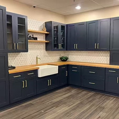 Our CSJ Navy Blue and Sage Green cabinet lines work great for islands or lower cabinets